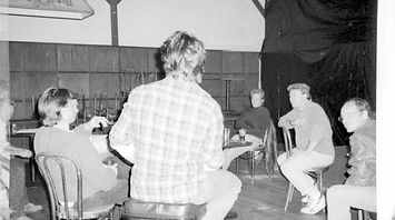 'A drunk Sisyphus pushing his rock uphill' is what one critic said about a Dr. Ken Scott performance. A neophyte performer and one given initially to simply shouting louder than anyone else as he raced about the exciting stage, Scott soon realized, prompted by repeated bludgeonings from Uncle Tad to 'hear beyond the sound of your own mind screaming', that his real strength lay in his willingness to become a target for those throwers bent on savagery. Dr. Scott then made the conscious decision to seek out and provoke the worst of the cruel in attendance in order to offer himself as sacrifice, as Myron does, for the good of all, adapting his explosive style of 'controlled interruptive anarchy' to incorporate listening to the cues coming from the audience, making his antagonism that much more penetrating.